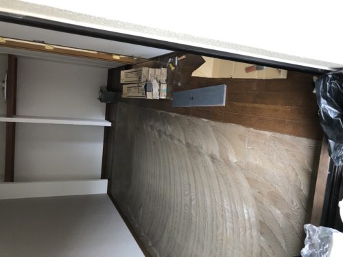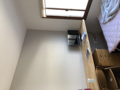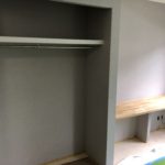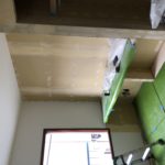 クロス工事2日目(^^)子供部屋の壁天井クロス工事が順調に進行中!その合間にデスク代わりのカウンターにペーパー…