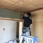 小倉北区高峰のGマンションでは長くかかっていた大工工事、左官工事が完了して、いよいよクロス屋さんが入ってきまし…