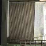今日は朝から若松区響町の三和シャッター修繕工事にきています。 電気系統の部材の故障で開閉時に斜めになり動かなく…