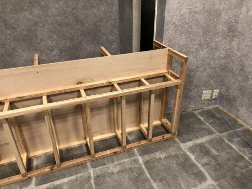 夜間作業初日は思った以上に作業が進み大工さんもホッと一息(^^)什器2台が完成…今日の夜間で半分が終わる計算で…